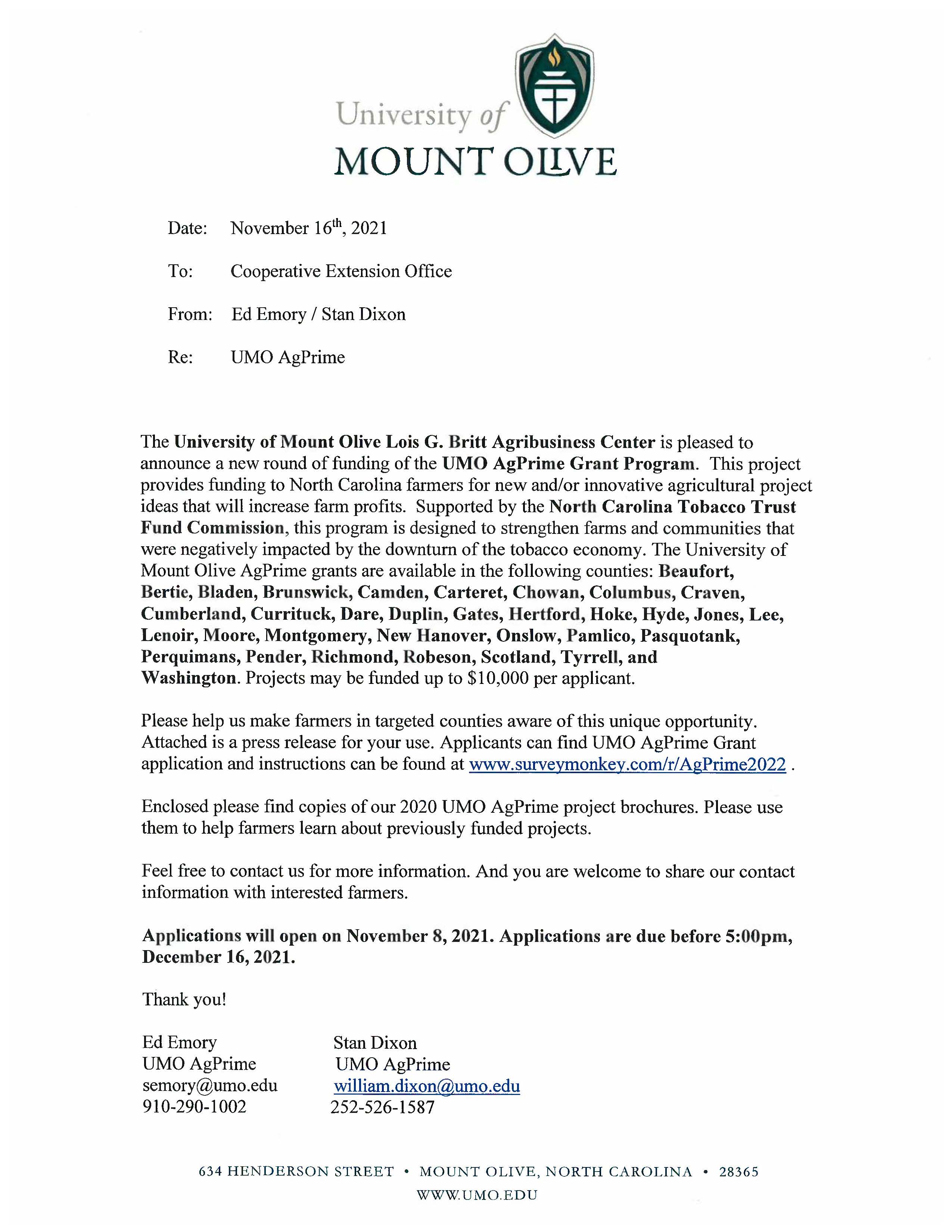 Collapse ▲The 2022 round of grant funding is accepting applications from innovative Moore County Farmers until December 16, 2021. Apply directly online or call the N.C. Cooperative Extension, Moore County Center for more information, 910-947-3188.